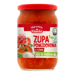 Przedstawiamy Państwu prawdziwy klasyk polskiej kuchni, czyli zupę pomidorową z ryżem. Nasza propozycja przyrządzona jest z dojrzałych pomidorów wzbogacona dodatkiem aromatycznych ziół i przypraw oraz ryżu. To propozycja na prawdziwie domowy obiad, przywołujący smak dzieciństwa. W dodatku bardzo zdrowy i syty, ponieważ nie użyliśmy żadnych konserwantów oraz zbędnych dodatków. Ponadto warto wspomnieć, że pomidory które stanowią podstawę naszej zupy, po obróbce termicznej – ugotowaniu wykazują nawet więcej właściwości prozdrowotnych, ponieważ gotowanie utrwala zawarty w tych warzywach likopen.