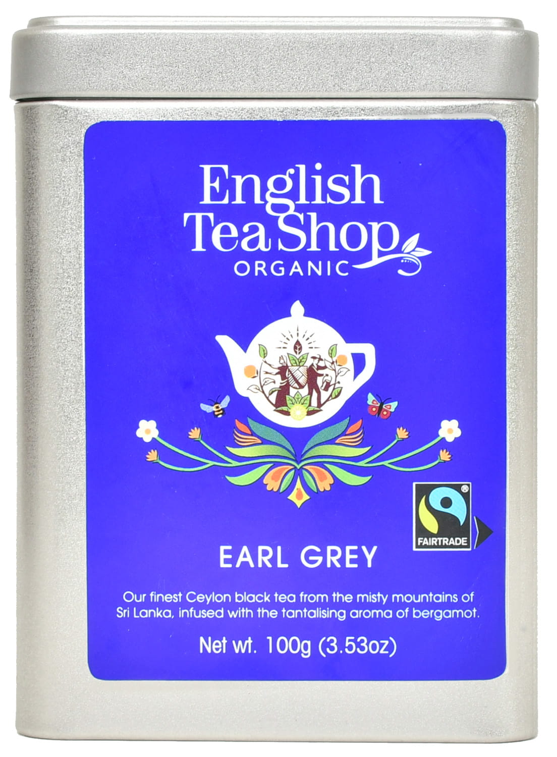 Opakowanie zawiera 100 g liści herbaty English Earl Grey od English Tea Shop. Uprawy, z których producent czerpie składniki, to miejsca z certyfikatem Fairtrade. To oznacza, że osoby, które ją zbierają, otrzymują godziwe wynagrodzenie.