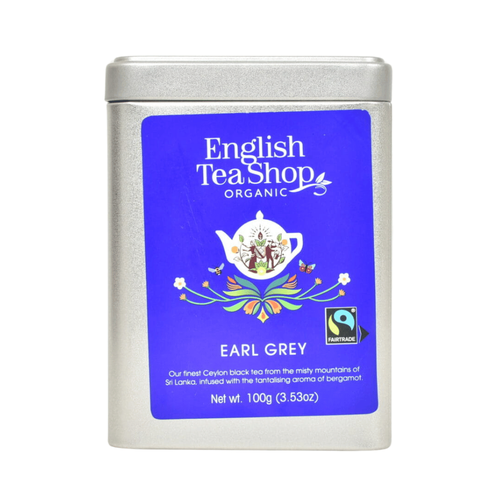 English Tea Shop English Earl Grey to najwyższej jakości czarna herbata z dodatkiem aromatu bergamotki, które zbierane na plantacjach ekologicznych położonych w czystych rejonach. Przygotowany napar wyróżnia się przyjemnym posmakiem bergamotki.