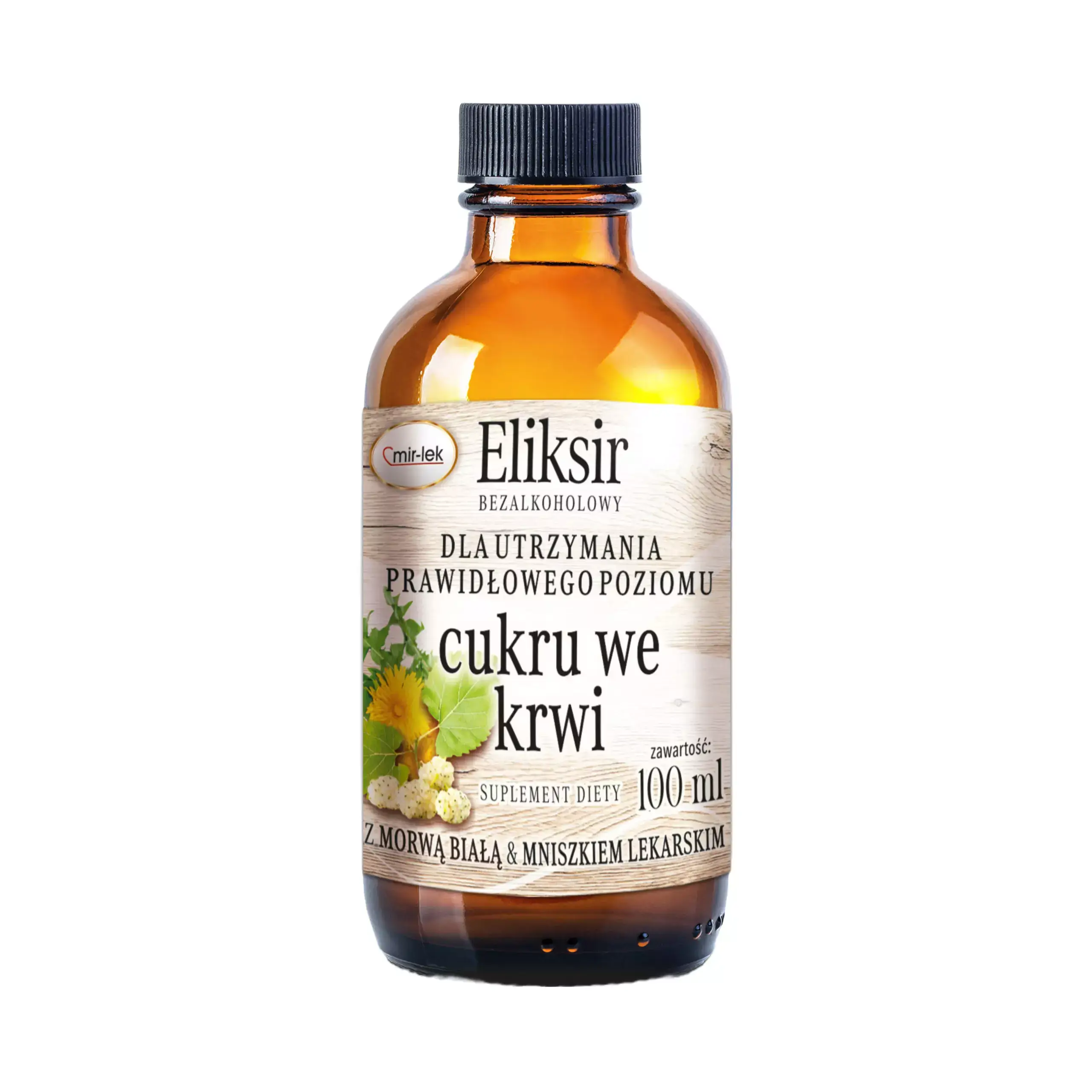 ELIKSIR dla utrzymania właściwego poziomu cukru we krwi powstał z wyciągów z roślin takich jak:: jałowiec, morwa , mniszek lekarski, krwawnik, bez czarny, oregano, kozieradka, gryka. Morwa biała może przyczynić się do utrzymania równowagi metabolicznej węglowodanów w organizmie. Jałowiec pomaga utrzymać równowagę fizjologiczną cukrów, mniszek lekarski pomaga kontrolować poziom cukru, bez czarny pomaga utrzymać prawidłowy poziom glukozy we krwi przy zdrowym stylu życia, kozieradka pomaga w utrzymaniu fizjologicznej równowagi cukrów, oregano wspiera zdrowie układu sercowo-naczyniowego.