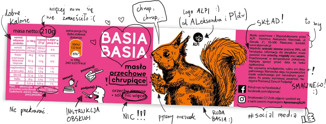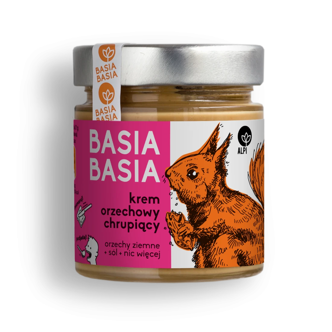 To połączenie gładkiej pasty z prażonymi, małymi kawałkami orzeszków, które przyjemnie chrupią. Kto mógłby się oprzeć tej przesympatycznej parze, stworzonej po to, aby umilić Ci dzień? Nasz chrupiący krem z orzechów sprawdzi się w Twojej kuchni na wiele różnych sposobów. Urozmaici smak ciast, ciasteczek, rogalików, a nawet zwykłych kanapek! Co więcej, krem z orzechów, który jest chrupiący, szczególnie przypada do gustu dzieciom. Zawsze szukają one zaskakujących produktów – dlatego podaruj im coś, co płynie prosto z natury. Nasz krem orzechowy z kawałkami orzechów z pewnością okaże się lepszy niż klasyczne produkty z cukrem dodanym w składzie. A do tego dzieci zaprzyjaźnią się z Basią zerkającą na nich z etykiety! Widzisz? Krem orzechowy z kawałkami chrupiących orzechów to połączenie przyjemnego z pożytecznym.