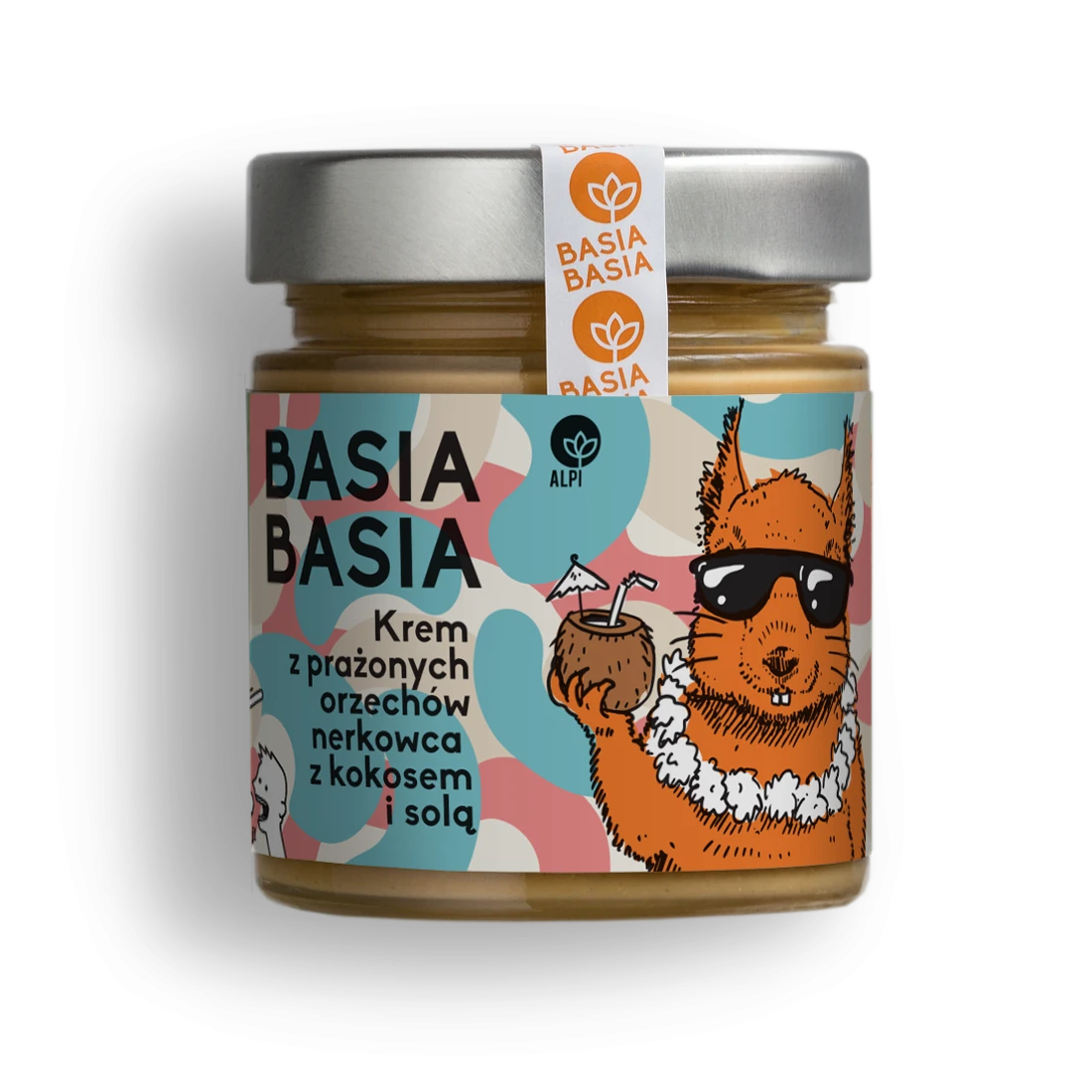 Alpi BasiaBasia Krem z prażonych orzechów nerkowca z kokosem i solą 210 g to produkt o naturalnym, prostym składzie. W jego recepturze połączono prażone orzechy nerkowca, aromatyczny miąższ kokosa oraz szczyptę soli himalajskiej, co nadaje kremowi wyjątkowego, lekko słonego smaku, przełamanego nutą egzotyki. Brak oleju palmowego, sztucznych barwników i konserwantów sprawia, że jest to idealny wybór dla osób ceniących sobie wysoką jakość.