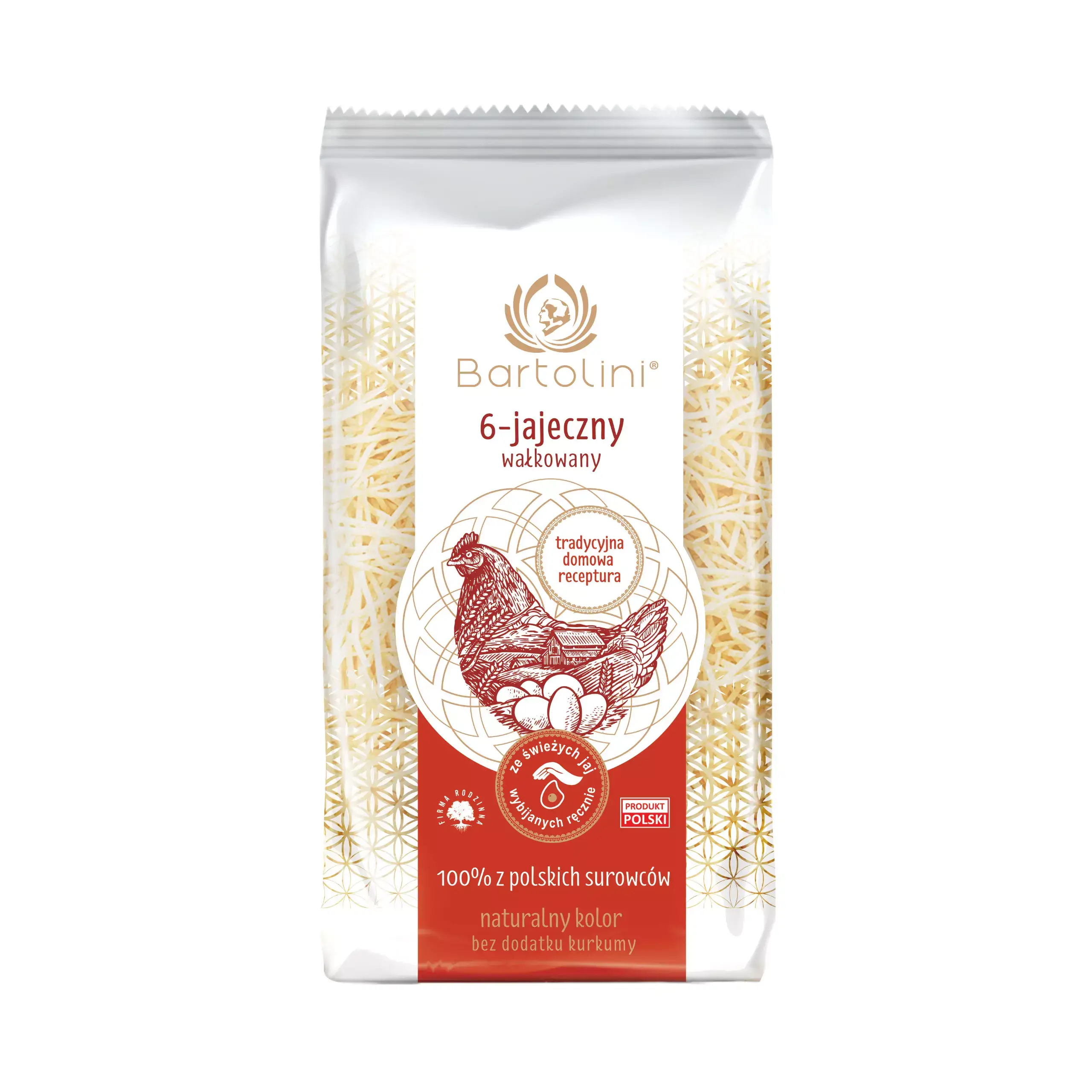 To wspaniała alternatywa dla popularnych makaronów ze zwykłej mąki, które mają znacznie więcej kalorii i mało istotnych wartości odżywczych. W odróżnieniu od nich ten makaron zawiera zdrowszą mąkę z pszenicy durum i świeże jajka. Dzięki temu jest w stanie dostarczyć do organizmu sporą ilość błonnika pokarmowego. Makaron 6-jajeczny durum krajanka cienka marki Bartolini jest dostępny w typowym opakowaniu o pojemności 250 g.