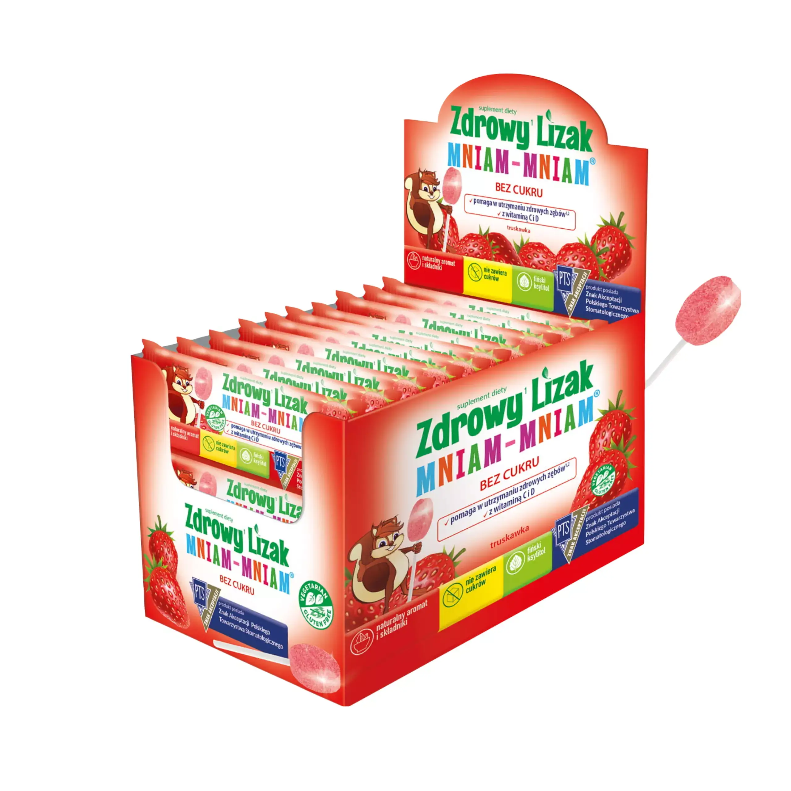 ✔︎ Zdrowy Lizak Mniam-Mniam z Witaminą C i D na Ząbki, Kości i Odporność posiada akceptację Polskiego Towarzystawa Stomatologicznego.
