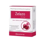 Suplement diety w kapsułkach zawierający żelazo i wspierającą jego wchłanianie witaminę C.